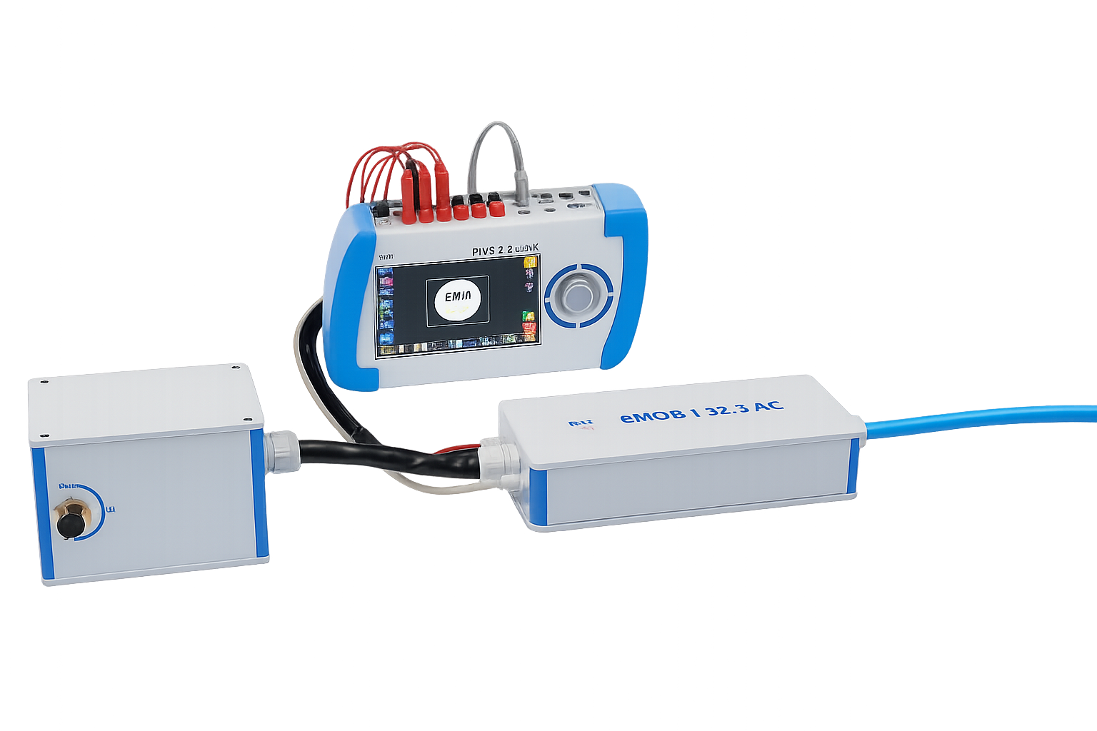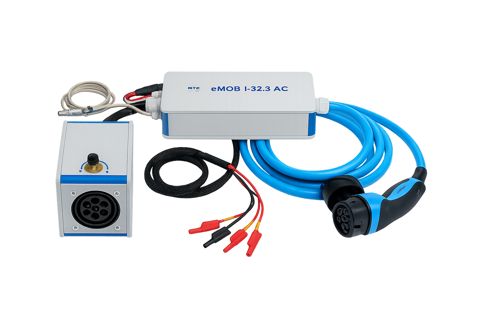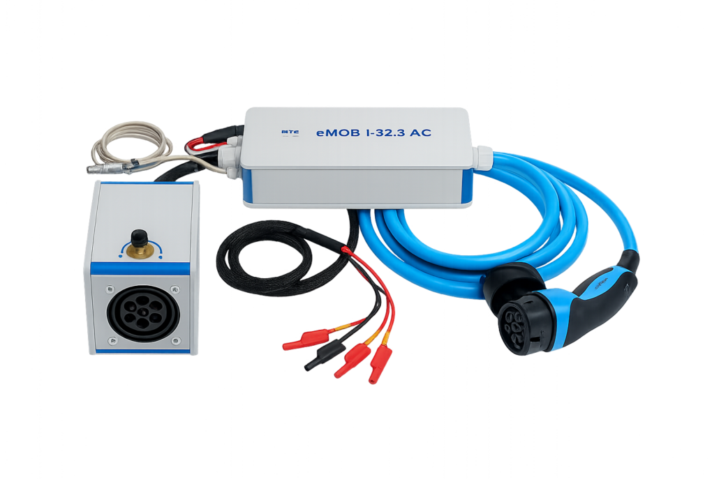Der eMOB I-32.3 AC 3-phasige Testadapter für Strom und Spannung in Kombination mit einem tragbaren MTE Arbeitsnormal ist das richtige Werkzeug, um eine solche Kalibrierung an EVSE mit angeschlossenen Kabel Typ 2 für langsames Laden mit Wechselstrom (AC) bis zu 32 A, 300 V in der Genauigkeitsklasse 0.1 durchzuführen.
